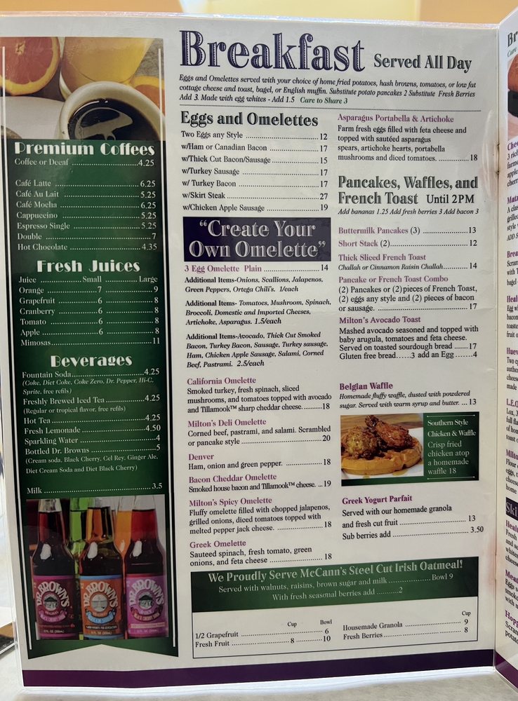 Welcome to Milton's, a beloved gem nestled in Del Mar, CA. This charming establishment brilliantly melds the atmosphere of a classic deli with modern amenities, allowing for a delightful dining experience. Whether you’re in for breakfast, lunch, or dinner, Milton's menu offers an extensive range of mouthwatering options, from their famed pastrami sandwiches to flavorful matzo ball soup.